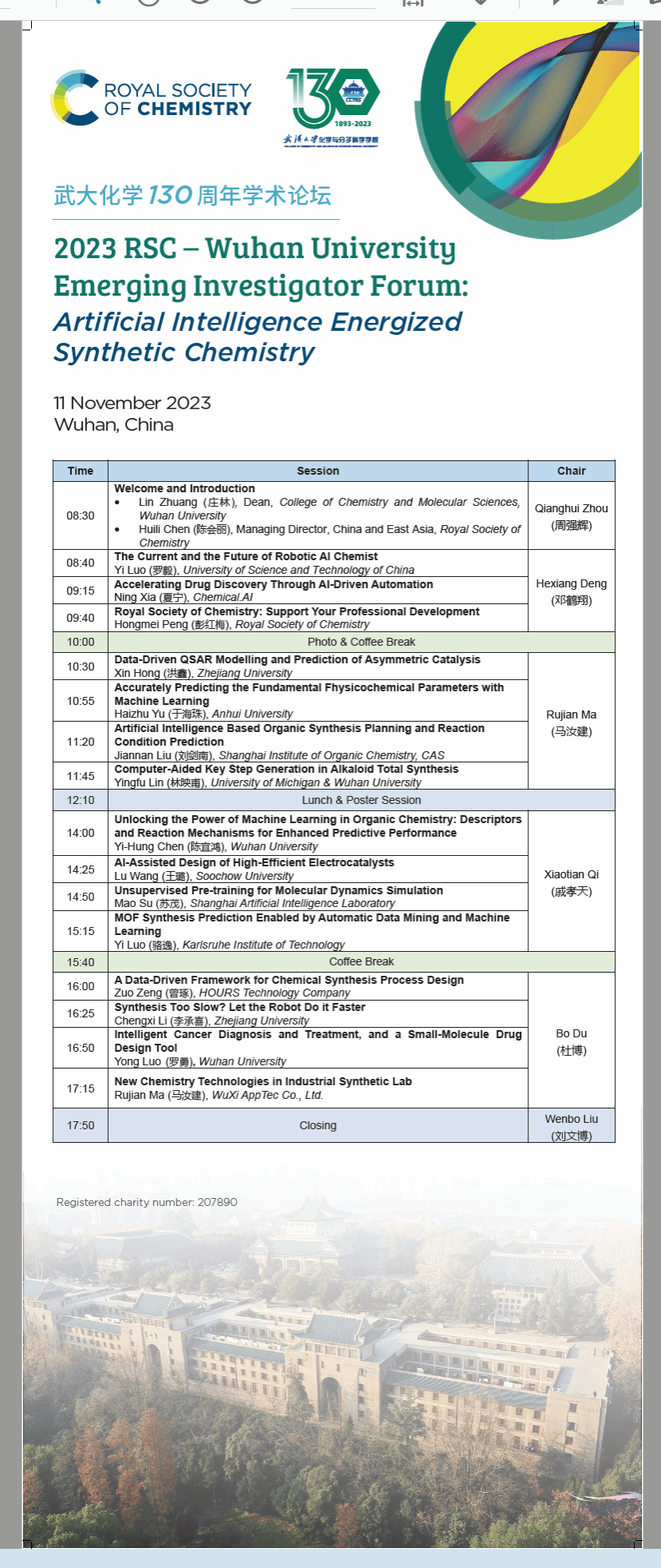 将联合英国皇家化学会举办第六届青年学者论坛。论坛定于2023年11月11-12日在黄色直播网站