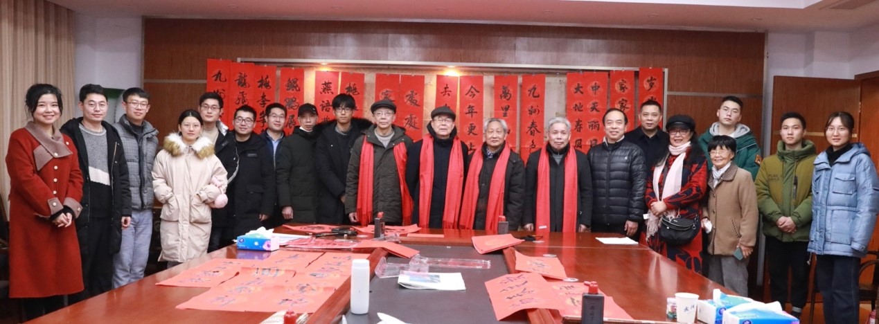 知名书画专家肖兵、李新福、殷党平和秦金贵四位教授现场挥毫泼墨,为学院师生书写“福”字和春联,送上年味十足的新春祝福。