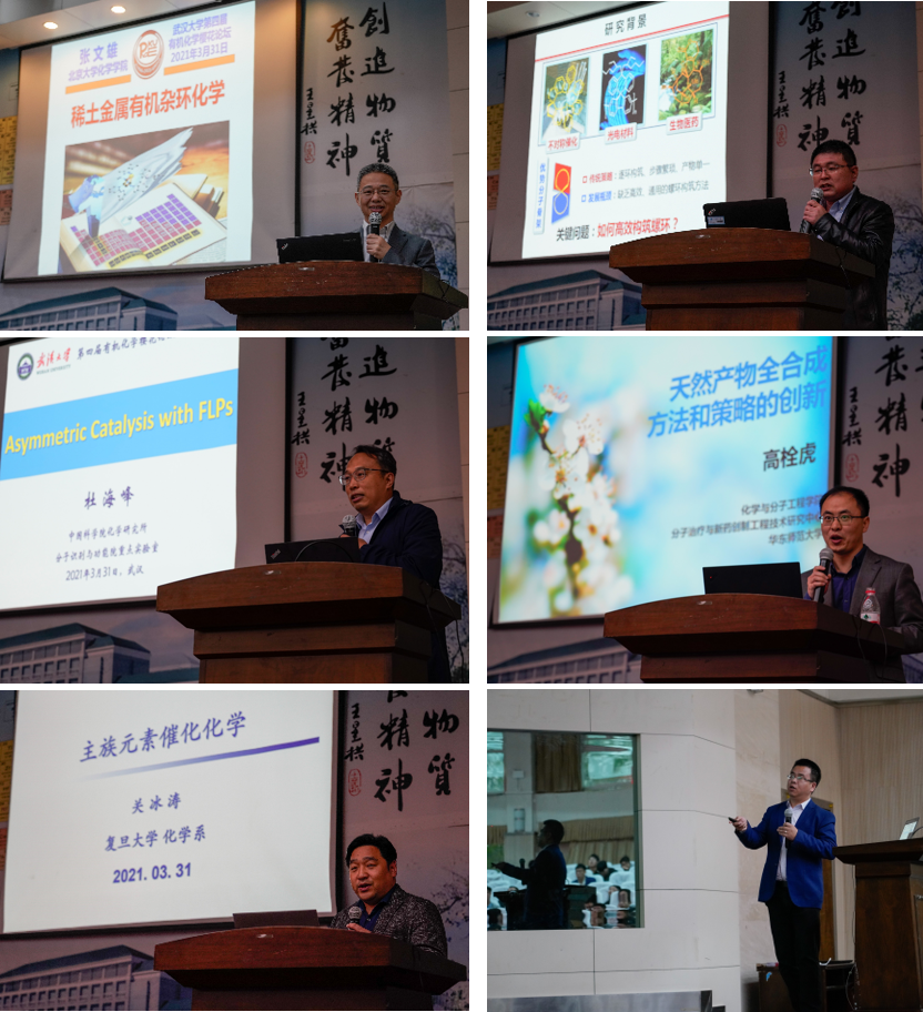 校友、北京大学余志祥教授主持了第一场和第二场学术报告。首先,北京大学的张文雄教授作了题为“稀土金属有机杂环化学”的报告。张教授首先从我国稀土资源储量丰富的角度阐明了稀土作为我国战略性资源的重要性,稀土元素因其独特的4f电子结构和特殊的理化性质,无论从基础研究还是应用价值的角度都具有重要研究意义。随后,张教授介绍了课题组围绕稀土金属杂环戊二烯切断碳二亚胺以及活化白磷直接构建有机磷化合物方面的系列开创性研究成果。