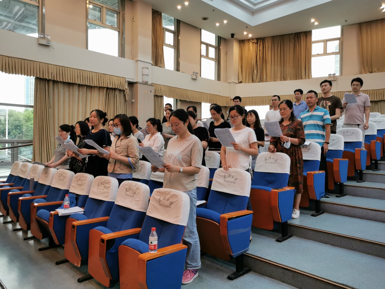 作为序章,院党委书记卢昌宁、院长庄林、副书记王中全、副院长周洪元四位领导慷慨激昂地朗诵诗句,从“坚持”、“坚韧”、“守候”和“信念”四个方面充分诠释了何为“不忘初心”。稍后,悠扬的钢琴伴奏响起,老师们轻声吟唱出“不忘初心,继续前进”的前奏。“万水千山不忘来时路,鲜血浇灌出花开的国度”一句,带着演唱者和听众一起重温建党百年的一段段红色记忆。“生生不息只为了那一份托付,无惧风雨迎来新日出”一句,激荡起在场所有人的满怀豪情。当旋律跃动至高潮部分“你是我的一切我的全部,向往你的向往、幸福你的幸福”,歌以咏志,每一句歌词中都蕴藏着牢记使命、催人奋进的力量!