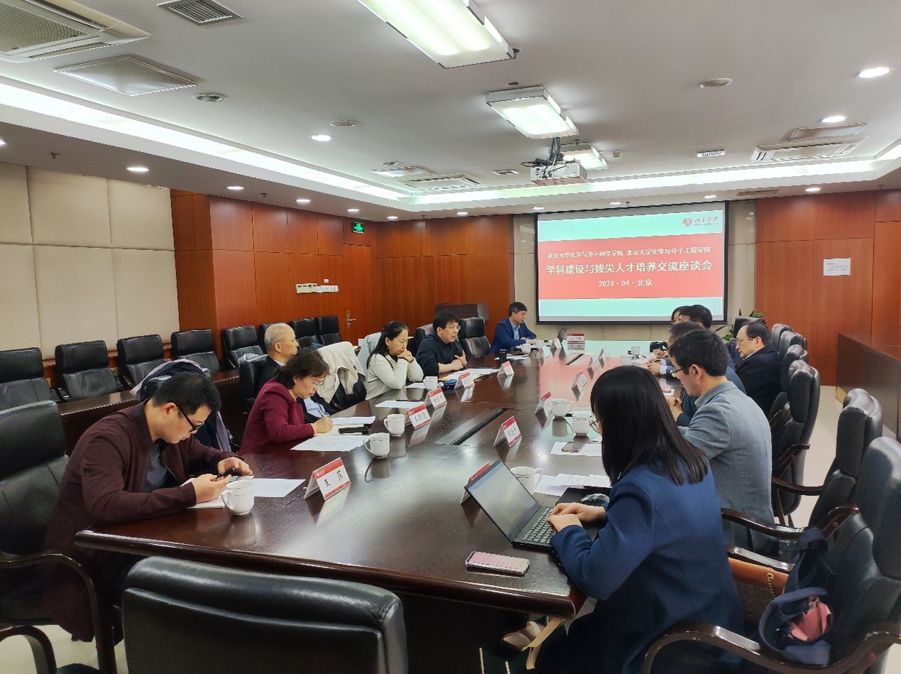 庄林院长介绍了学院历史沿革、学科发展及人才培养特色。庄林院长表示,北大化学院和武大化学院历史渊源颇深,许多化学先贤在北大创新,来武大开拓,两院为国育才的历史使命一致,组织机构设置和师资队伍规模相似,拔尖创新人才培养目标一致,两院交流合作基础良好。