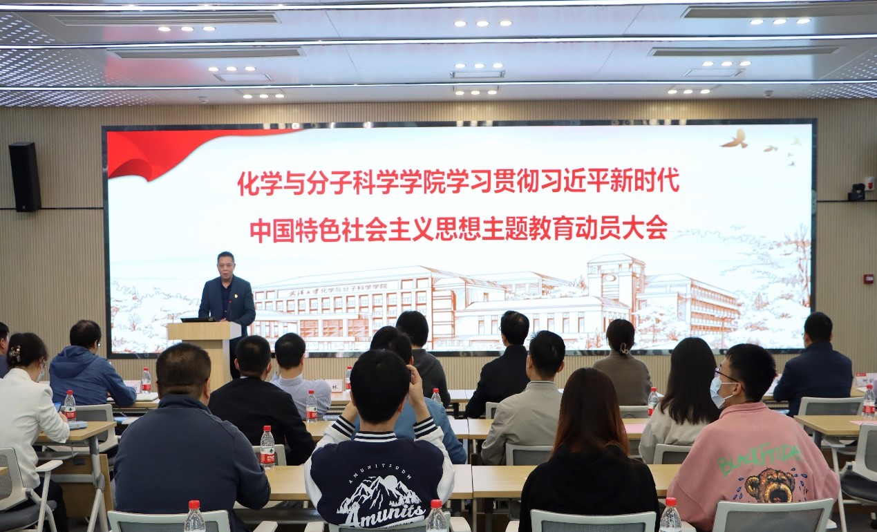 会上,王丽萍结合学院实际,对开展主题教育进行了深入动员。她指出,开展主题教育,是推动贯彻党的二十大战略部署的有力举措,是深入推进新时代党的建设新的伟大工程的重大部署,对于贯彻新发展理念、构建新发展格局、推动高质量发展,推进中国式现代化,推进党的自我革命、时刻保持解决大党独有难题的清醒和坚定,始终与人民同心,保持党的先进性和纯洁性,使全党更加紧密地团结在以习近平同志为核心的党中央周围,完成党在新时代新征程的使命任务,具有十分重大的意义。王丽萍强调,要以开展主题教育为契机,用习近平新时代中国特色社会主义思想统一思想、统一意志、统一行动,弘扬伟大建党精神,教育全院党员、干部牢记“三个务必”,牢记为党育人、为国育才的初心使命,坚持和加强党的全面领导,全面贯彻党的教育方针,以立德树人为根本,以队伍建设为核心,以国家战略为指引,以体制机制为动力,聚焦“学科建设年”发展主题,办好武大化学130周年院庆,大力推动化学学科新一轮“双一流”建设水平,全面推进学院各项事业高质量发展。