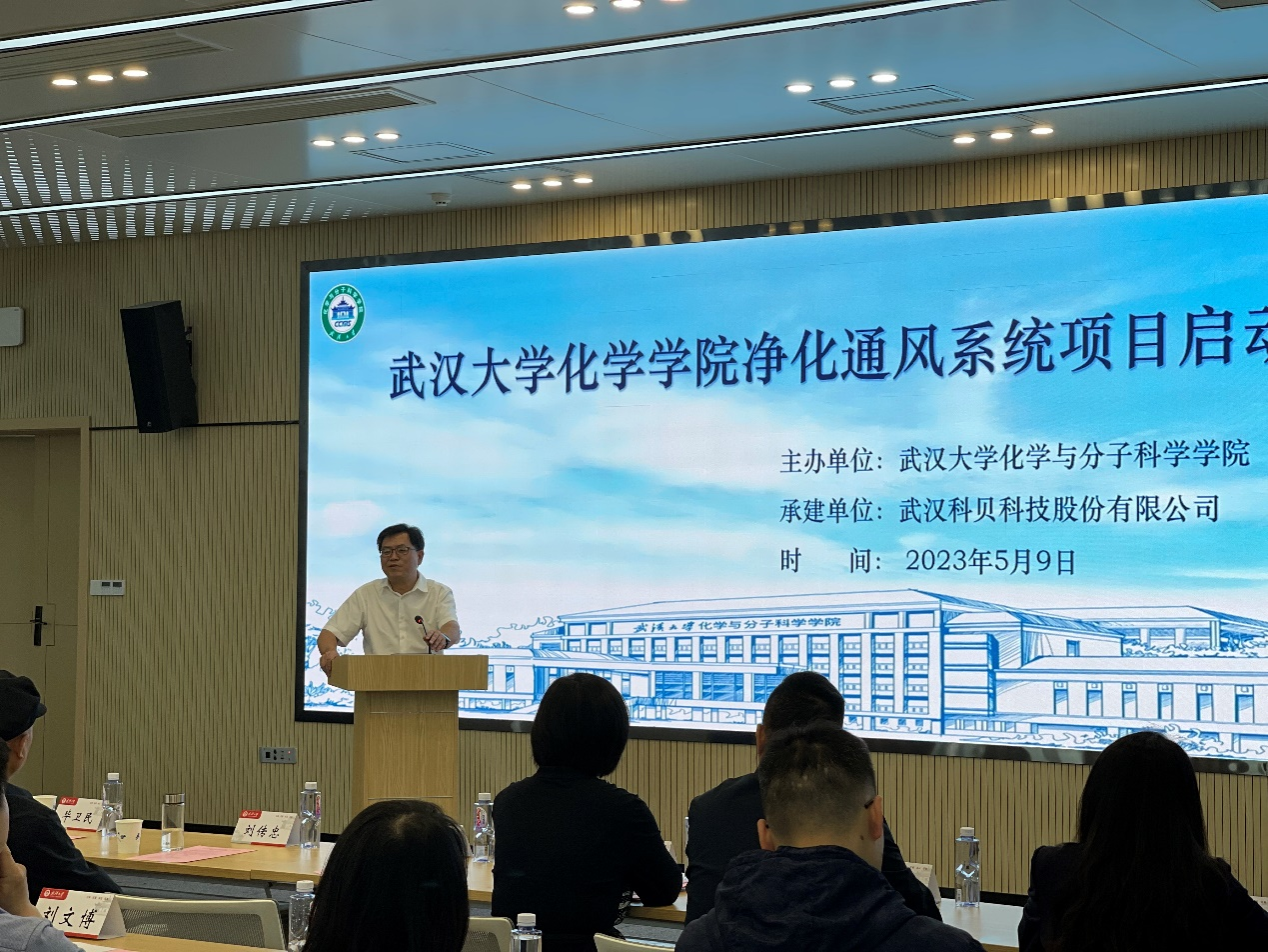 最后校长助理陈慧东同志讲话并宣布项目正式启动。陈校助表示化学学院净化通风系统项目的建设是学校实验室条件改善的一项重要工作,他对前期工作中学校有关职能部门的密切配合和学院的努力表示感谢。同时期待项目进展顺利,希望以此次活动为一个良好开端,化学学院与科贝公司通力合作,在实验室净化通风系统改造领域打造标杆。