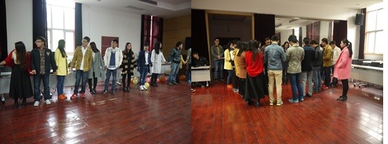 本次活动分三个阶段,第一项是初相识,来自化院、外语、电信、计算机等学院的单身硕博进行抽签“随缘”分组,男女平均,面对面建团队群。在围成两个大圈后,进行了自我介绍,并为自己的团队起了队名,最终诞生了颜值爆表队和俊男美女队。第二项是趣味运动会,第一个游戏是一圈到底,男生女生手牵手站在一排,用呼啦圈传递,大家都玩的乐在其中。第二个游戏是男女双人跳绳1分钟,开始大家都面对面不好意思,随着游戏的深入,大家都变得自然而且玩的很开心。虽然最后俊男美女队以177个获得胜利,但是我们都懂得结果不重要,关键是这面对面的过程。第三个游戏是男女背对背运气球往返接力,同样俊男美女对最终取得胜利。最后一个游戏是“青春动力小火车”,男生女生混合站在一起组成小火车,不得不赞叹颜值爆表队,简直以风的速度飞跃终点取得胜利。