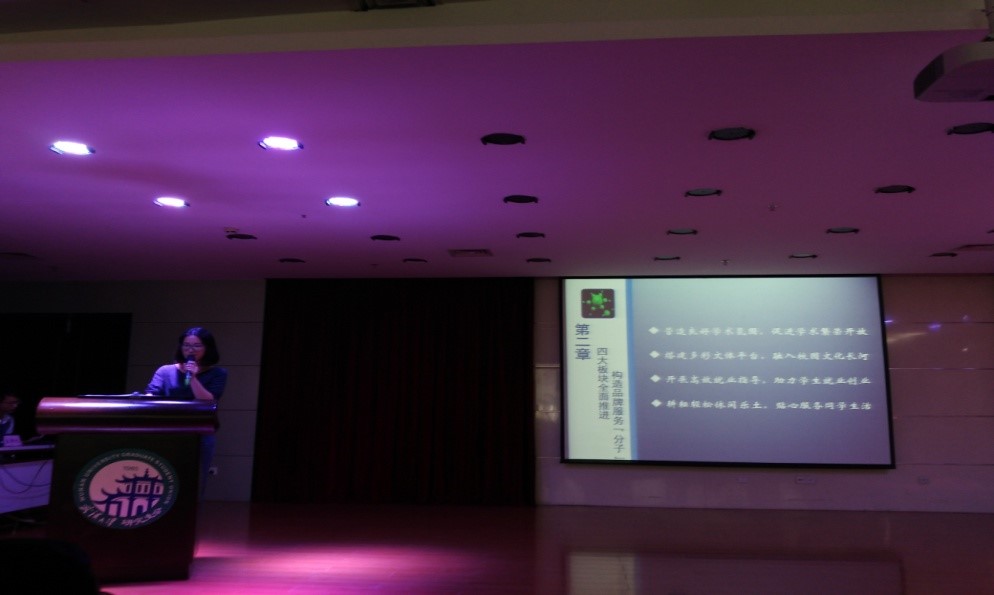 回首过去的一年,在学术科技方面,成功举办了学术诚信月系列活动之学术诚信辩论赛,化学、政管联合举办学术诚信月系列活动之学术诚信手册、讲座,协办学术科技节开幕式,承办第十届学术科技节系列活动之化学前沿论坛,组织参加第十届学术科技节之大型跨学科综合知识问答竞赛--决战珞珈,组织参加第十届学术科技节之第六届“我心目中的好导师”系列活动。并以微博、微信、化院官网、研工部网站等平台进行全方位的学术信息推广。