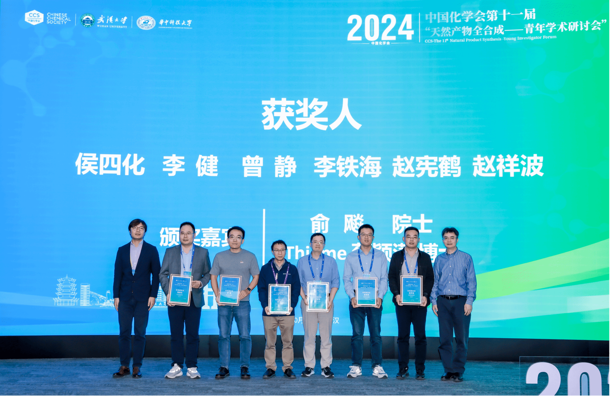 此外,本次会议设置了“新锐报告奖”和 “优秀墙报奖”,旨在鼓励更多的青年学者和科研团队积极投身全合成研究事业,勇于探索,锐意进取,推动本领域的创新和发展。经过参会资深专家的权威评选,本次会议最终遴选出了6名“新锐报告奖”和10名“优秀墙报奖”。