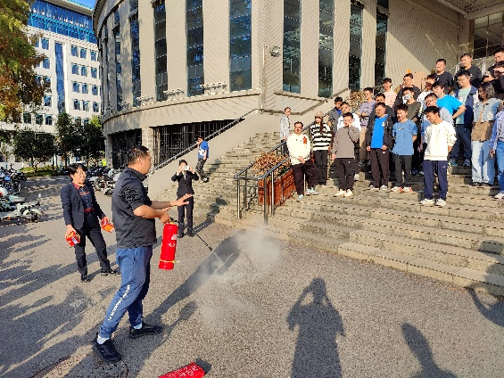 组织开展了一场消防灭火培训演练,各实验室安全员、物业安保人员及消防维保人员近百人参与了演练活动。活动得到了学校保卫一分部的大力支持,取得了圆满成功。