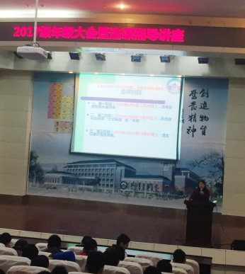 选课系统及相关本科教学制度解读的讲座。张主任主要就同学们在选课过程中可能遇到的一系列问题进行了详细解答,又系统性的讲述了选课系统的使用方法、专业课及部分通识课的选课时段、以及一些相关的注意事项。张芳主任的讲座精炼简洁,囊括重点,赢得同学们的一致好评。