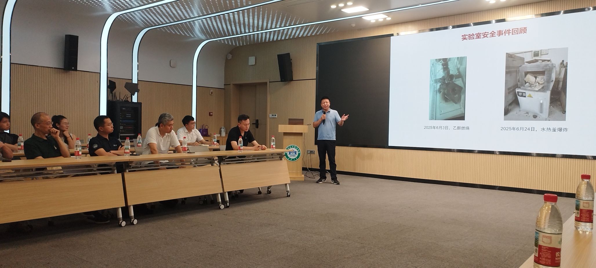 金先波老师对实验室发生的两次安全事件做了深刻反思,汇报了实验室安全整改方案,以及下一步安全管理工作计划。在场专家对金老师实验室整改方案提出了质询并要求金老师做好学生的安全教育培训工作以及实验室安全制度完善工作,及时对老旧仪器设备进行报废更新。