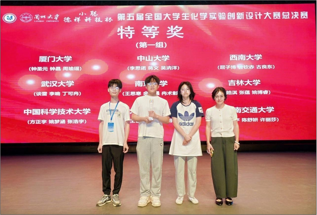 全国大学生化学实验创新设计大赛是由中国化学会和教育部高等学校国家级实验教学示范中心联席会主办的全国性学科竞赛,是在全国普通高校大学生竞赛排行榜上的化学类A类竞赛。该赛事旨在为大学生搭建一个展示与交流实践创新能力的平台,推动高等学校实践教学深化改革,进一步夯实学生在化学实验方面的基础知识、基本理论与基本技能,增强大学生分析问题与解决问题的能力,着力培养其创新意识、创新精神与创新能力,为高素质创新人才的成长提供有力支撑。本届竞赛期间,来自四百多所高校的一千多支队伍经过前期东北、西北、华北、华东、华中、西南、华南七大分赛区的激烈角逐,最终91支队伍晋级总决赛,晋级比例低于7%。总决赛设置特等奖、一等奖和二等奖,特等奖比例为20%左右。