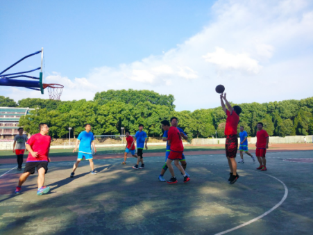 随着裁判的一声哨响,比赛拉开帷幕。尽管是友谊赛,但双方球员丝毫不懈怠。教师队率先发起进攻,凭借流畅的配合及过人的默契夺取领先优势,但毕业生队严阵以待,沉着应对,迅速改变战术,很快追平比分直至赶超。次节开打,教师队不甘示弱,交叉运球,区域防守,一个个灵活的战术,拿下了多个得分投篮。最后,教师队以3分的优势结束了上半场的比赛。