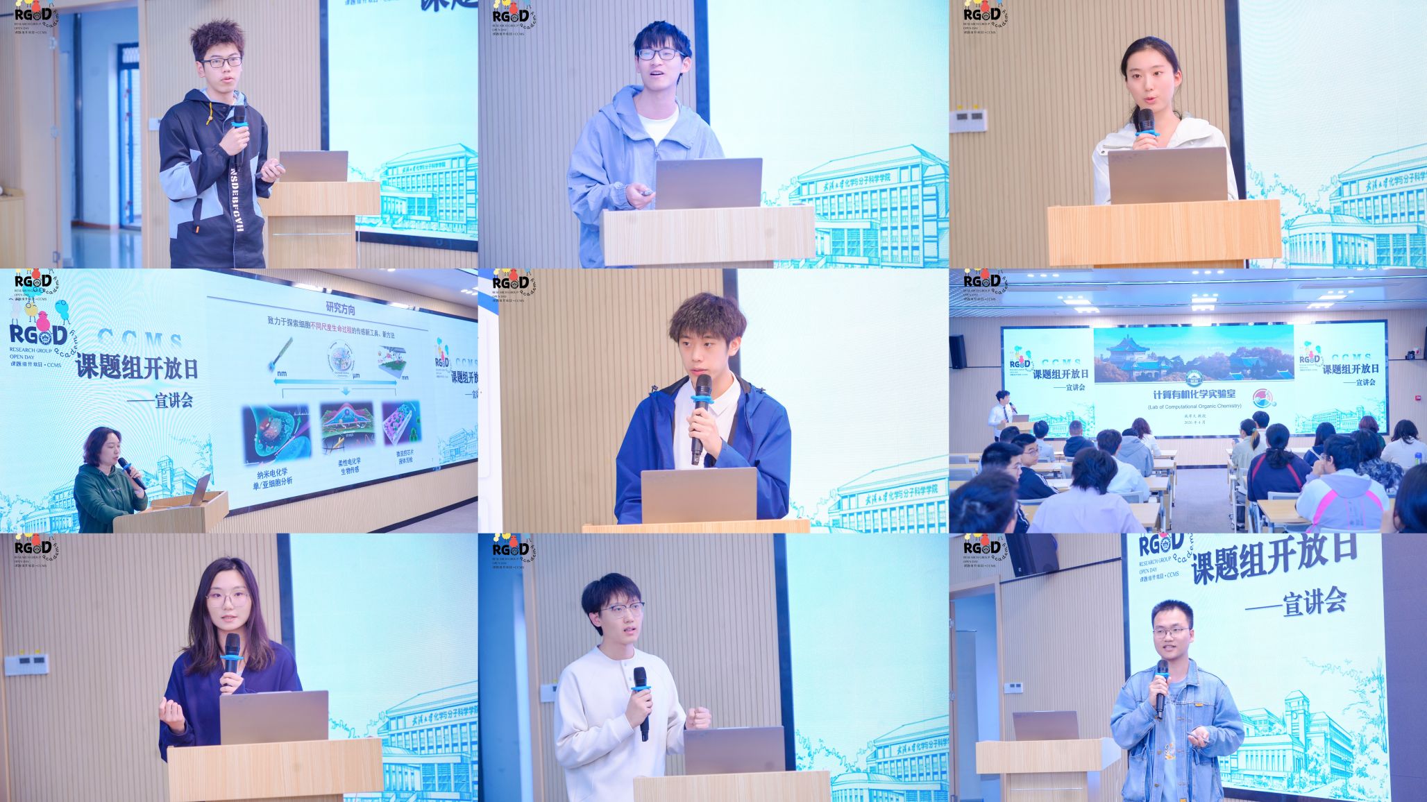 本次活动共分为课题组宣讲会、课题组咨询会和实验室参观三大板块。上午9点,课题组宣讲会在C512会议室正式开始。各课题组代表依次上台,围绕研究方向、科研成果、科研条件、人才培养等内容进行详细介绍。内容涵盖有机光电功能材料、生物医用高分子、功能核酸纳米技术、共价有机框架、等多个前沿方向,全面展现了各课题组的研究特色与科研实力。