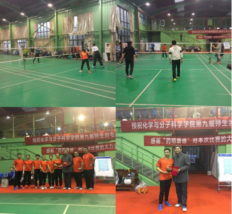 本届师生羽毛球赛由学院工会、研究生会共同举办,团体赛主要有混双、男双、女双三项,采用小组循环与淘汰相结合的赛制。比赛吸引了10组代表队共计100多名师生参加,分为A、B两个小组,经过一上午的小组赛,每个小组决出4支队伍进入八强。经过激烈的半决赛和决赛,最终,周翔教授、周晓海教授联队卫冕冠军;胡继明教授、张勋高教授联队荣获亚军;张俐娜教授、张先正教授联队和雷爱文教授队并列获得季军。