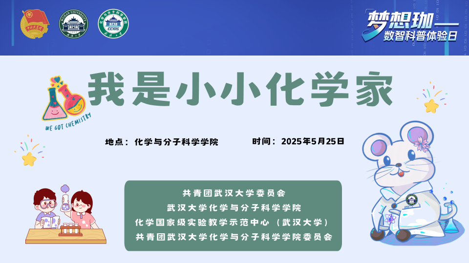 上午9点,满怀期待的小朋友在志愿者引导下有序完成签到、分组、领取实验装备,进入“魔法小屋”实验室参与实验。实验中心主任赵发琼老师和副主任刘欲文老师为小朋友们准备了生动、有趣的讲解。结合学院本科吉祥物“化小鼠”形象,本次活动还精心为小朋友设计了科普知识宣传手册,通过生动可爱的“初识武大化学”“身边的化学故事”及“化学小卫士”三个板块,让小朋友们探索化学的奥妙。