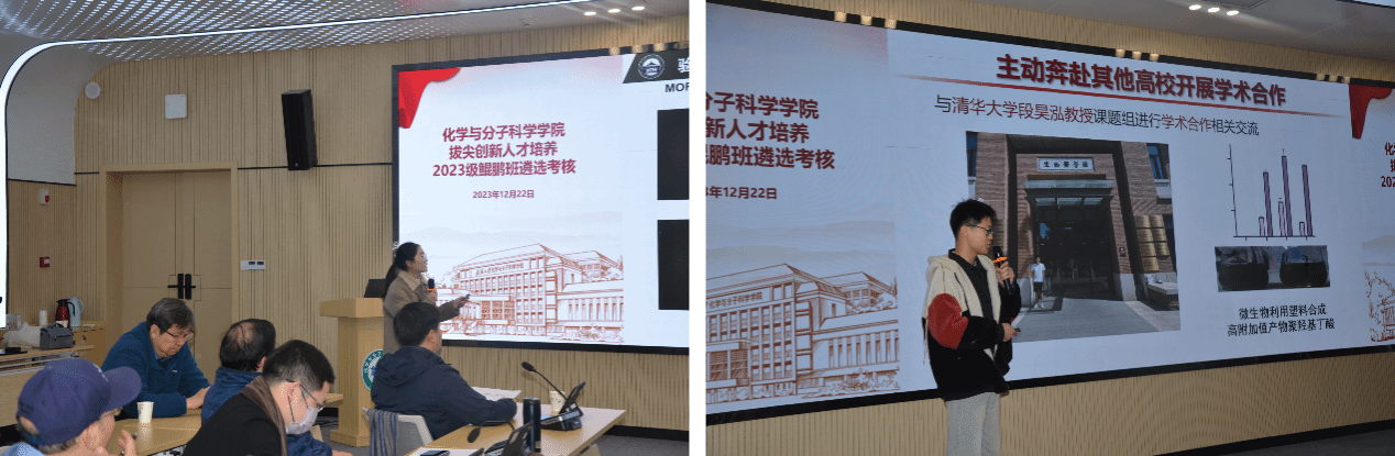 12月22日上午,黄色直播网站 在电化学楼C512举行了博士研究生拔尖创新人才培养2023级鲲鹏班遴选考核。由学院博士研究生拔尖创新人才培养咨询委员会及执行委员会委员担任专家,副院长黄卫华主持了整个考核过程。黄卫华副院长在考核开始前强调了拔尖创新人才培养试点建设方案的背景,并指出此次改革试点工作是聚焦国家“四个面向”的战略需求,落实学校研究生拔尖创新人才培养改革要求、提升博士生培养质量的重要举措。此次遴选秉持“...