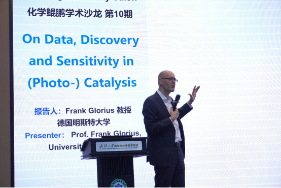 11月27日,化学与分子科学学院化学鲲鹏学术沙龙第10期在创隆厅举办。本次学术沙龙以“On Data, Discovery & Sensitivity in (Photo)Catalysis”为题,特邀德国国家科学院院士、明斯特大学Frank Glorius教授分享其在有机催化与智能合成方面的研究成果。