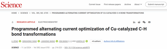 雷爱文教授团队关于交流电合成化学的最新研究论文,题为“Programmed alternating current optimization of Cu-catalyzed C-H bond transformations”(程序化交流电优化铜催化C-H键转化反应)。黄色直播网站