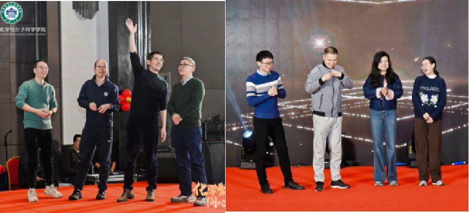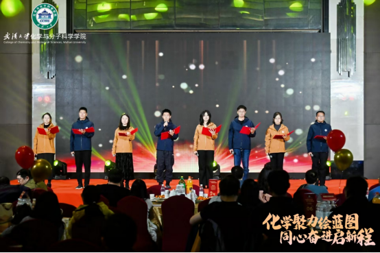 晚会在温馨、欢乐、激昂的氛围中圆满落下帷幕。此次联欢会不仅是一场精彩纷呈的视听盛宴,更是化学与分子科学学院凝聚力与向心力的生动写照。舞台上,师生同台演绎,歌声与笑声交织,才华与热情共舞,共同书写着学院温暖而有力的集体记忆。站在“十五五”新征程的起点上,化学与分子科学学院全体教职员工将继续携手并肩、凝心聚力,以“化”之韵涵育创新,以“合”之力共启新程。