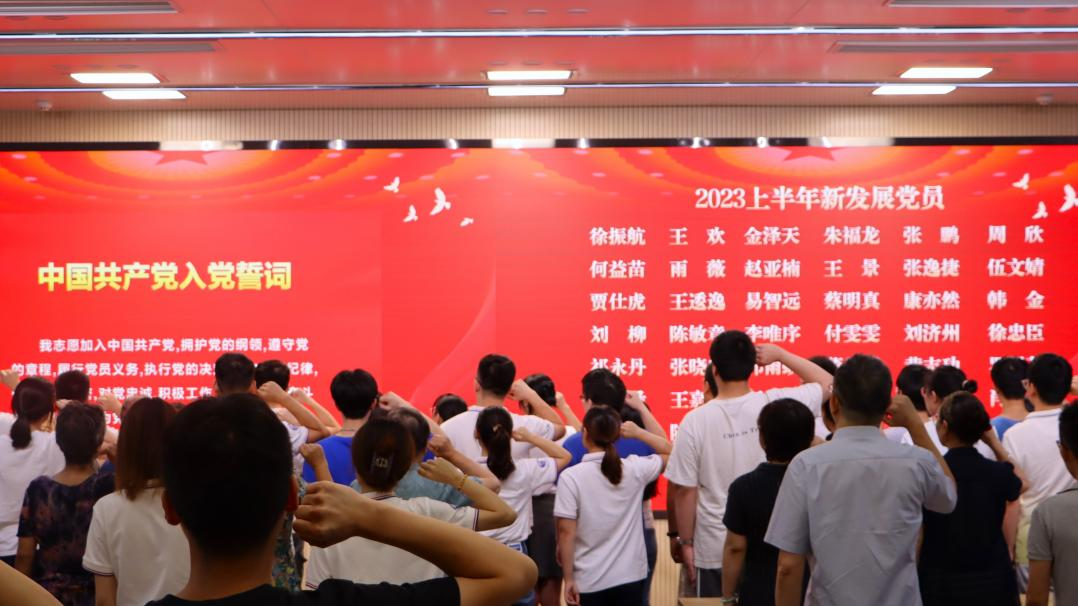 大会在雄壮的国歌声中拉开帷幕。学院党委副书记王中全进行领誓,新发展党员上台进行入党宣誓,台下全体党员共同重温入党誓词。各位党员高举右手,郑重宣誓,发出“为共产主义奋斗终身”的誓言,铿锵恢宏的誓词响彻全场,激励各位党员“不忘初心,继续前进”,始终在党爱党、在党为党,心系人民、情系人民,忠诚一辈子、奉献一辈子,以实际行动做一名合格党员。
