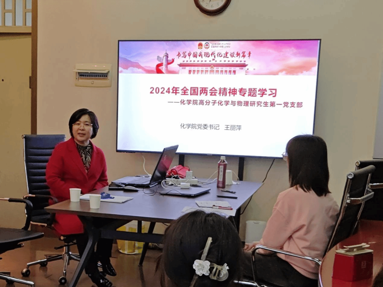 2024年3月12日,武汉大学化学与分子科学学院高分子化学与物理研究生第一党支部主题党日活动在化学院化北409教室举行。学院党委书记王丽萍同志、博宣团讲师张士琢以及支部全体党员参加活动,会议由党支书胡旭琪同志主持。