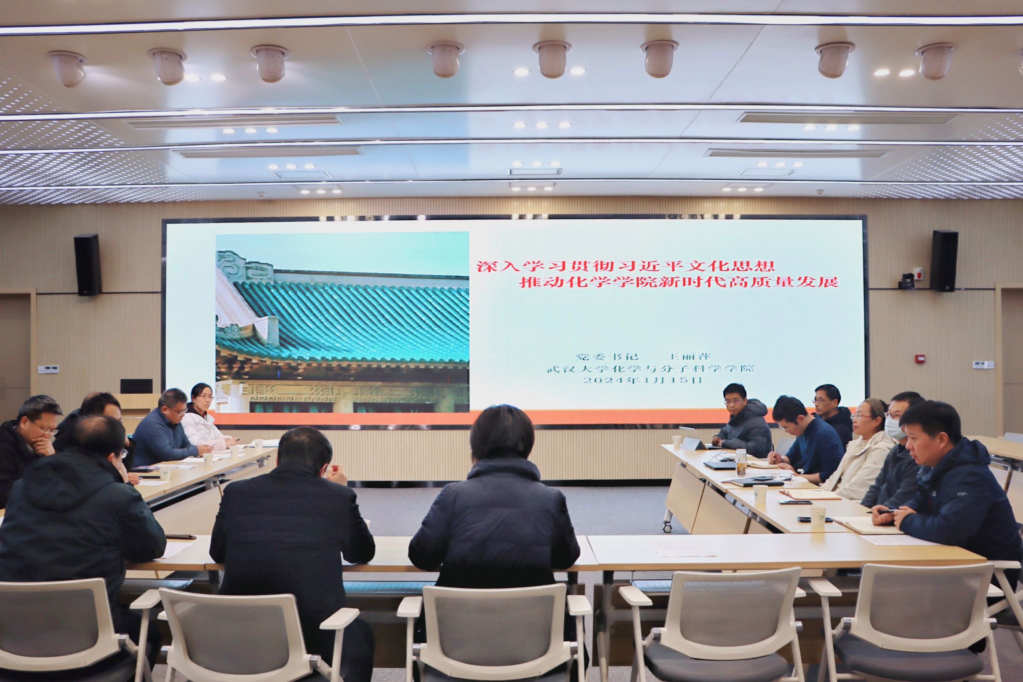 王丽萍同志指出,“明体达用、体用贯通”是全国宣传思想文化工作会议对习近平文化思想理论的重要概括,“体”指本体,即中华民族的民族精神、价值观念、优秀文化,亦指科学的思想理论;用指“实践”,八个字旨在将经义与治事有机结合,阐明了理论指导实践的重大意义;习近平文化思想指明了新的文化使命,高校学院应当主动承担起在新的起点上继续推动文化繁荣、建设文化强国、建设中华民族现代文明的时代重任。她总结了学院近两年的思想文化建设,始终如一地坚持将党建工作与学院文化建设深度融合,在坚定不移抓政治建设、夯实组织建设基础、扛牢全面从严治党主体责任的同时,不断丰富文化建设载体,为学院高质量内涵发展提供方向指引、思想指引、路径指引。她分别从学术文化、院史文化、校友文化、制度文化、环境文化等五方面介绍了近两年来化学学院在开展文化建设领域取得的突出成果,学院全体师生团结协作,以武大化学130周年庆为工作重点,强化了与各地校友的联系,举办了一系列校友论坛、学术论坛,编撰了院史资料,以传承武大化学学术精神和美育育人为宗旨全面改善学院学习与工作环境,得到师生和校友们的肯定与好评。