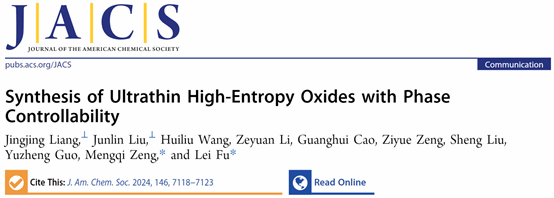 新闻网讯(通讯员化苑)Journal of the American Chemical Society(《美国化学会志》)近日在线发表了化学与分子科学学院付磊教授团队的最新研究成果,“Synthesis of Ultrathin High-Entropy Oxides with Phase Controllability”(《超薄高熵氧化物的相可控合成》)。武汉大学为第一署名单位,这项研究工作获得了国家自然科学基金委的资助。