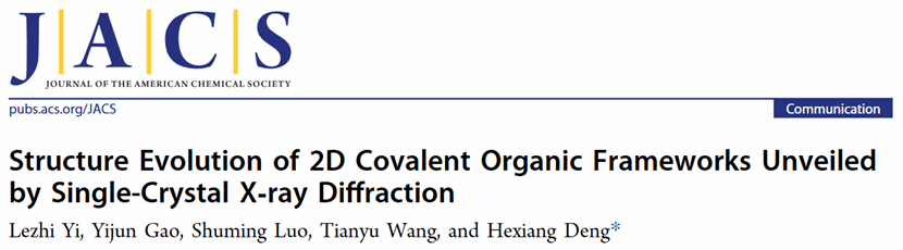 该论文题为 “单晶X射线衍射揭示二维共价有机框架的结构演化”《Structure Evolution of 2D Covalent Organic Frameworks Unveiled by Single Crystal X-ray diffraction》。第一作者为黄色直播网站