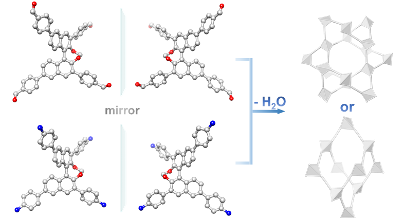 手性是自然界普遍存在的重要特性,贯穿于分子识别、催化反应和生物功能等过程。在分子化学中,手性分子的绝对构型直接影响其在分子组装过程中的立体相互作用,从而影响最终形成的结构。类似的,在多孔框架材料中,构筑单元的绝对构型也会在组装过程中发挥决定性作用,进而导致材料在结构和功能上的显著变化。然而,长期以来的研究主要利用绝对构型“引入手性环境”,而其对框架对称性、拓扑结构及功能的直接调控缺乏探讨。