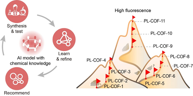 图2| AI“化学大脑”巧用有限实验,高效“锁定”超强荧光COF材料