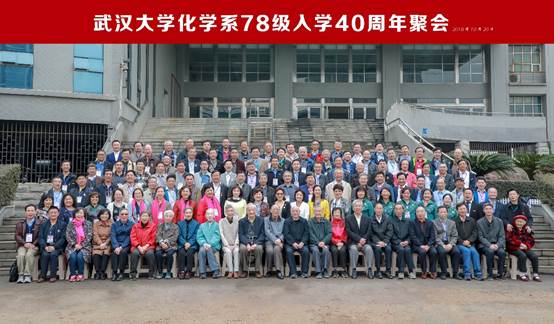 2018年10月20日-21日,化学系78级校友百余人返校,隆重纪念入学四十周年。在两天的时间里,78级校友们举办了入学四十周年纪念大会,参观了校史馆,他们在樱花大道、行政楼踏寻当年的足迹,东湖泛舟追忆同窗趣事。
