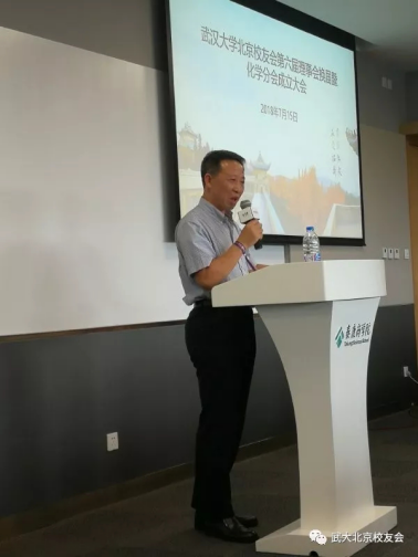 大会最后,卢昌宁书记致辞,对化学分会的成立表示热烈祝贺,并高度肯定了在京各位校友对母校及学院的关心和所作的贡献。随后,介绍了学院近年来发展情况和取得成绩,希望各位校友继续关心和支持学院发展,常回珈看看。