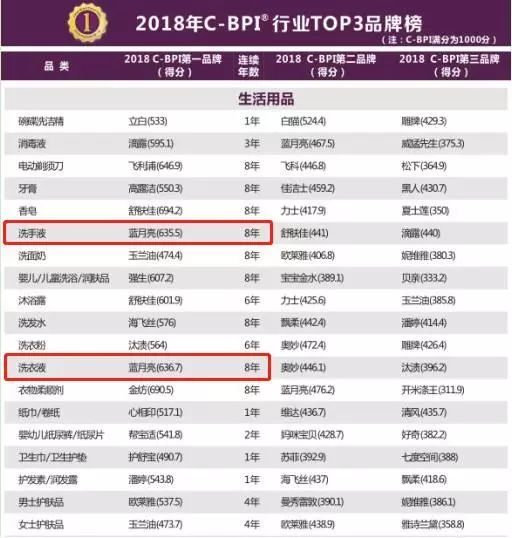 2018年C-BPI行业TOP3品牌榜