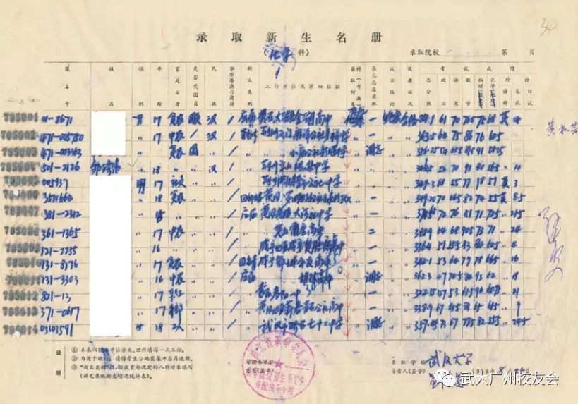 武汉大学1979年有机化学专业录取新生名册,邹榛夫校友提供