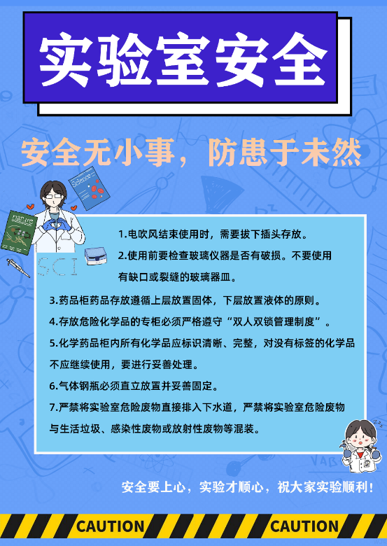 受到甘泉副院长和陈雨平老师的启发,团员吴佳蕊还就本次活动所学习到的实验室安全知识,绘制了一张海报,希望能够将安全知识宣传到更多的同学,辐射带动提升全院安全意识。