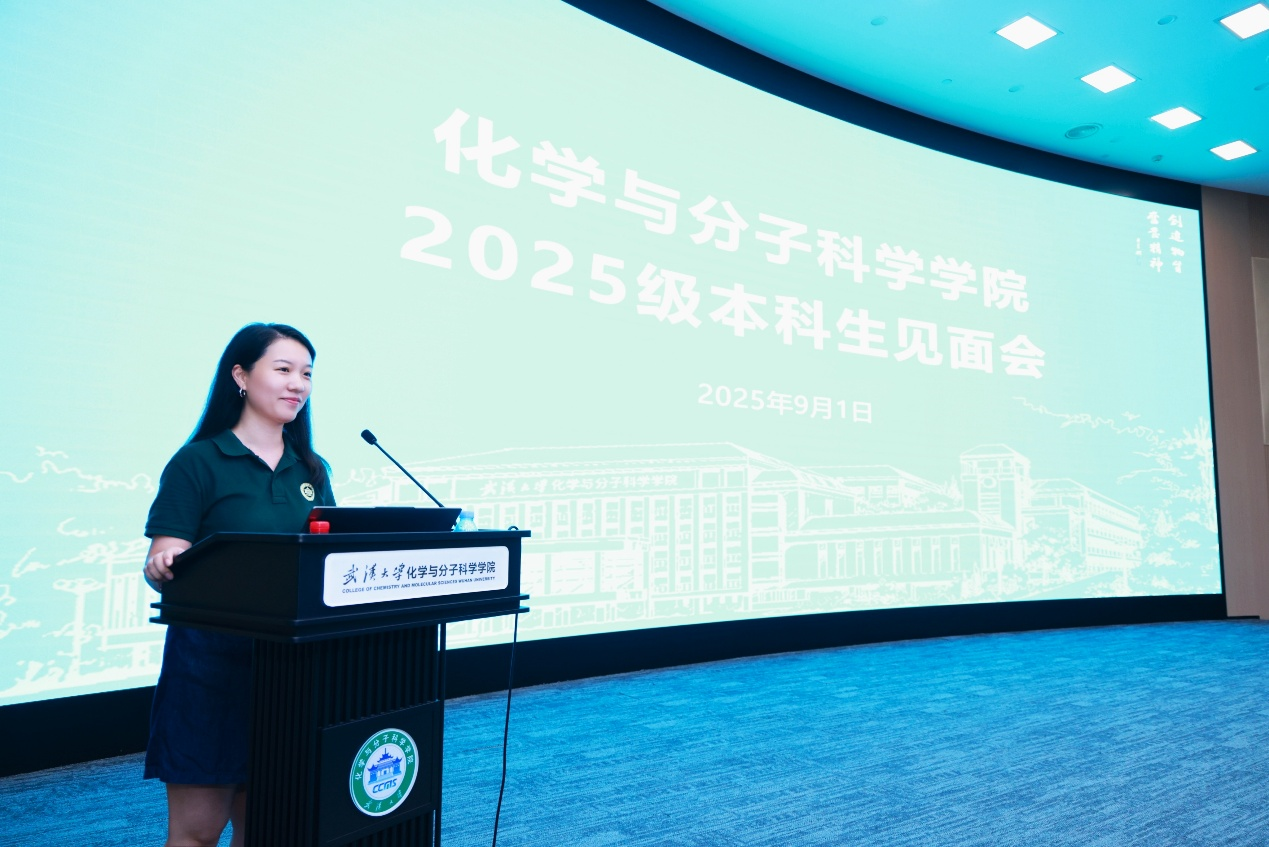 在朋辈助理聘任环节,党委副书记吕晶为潘雯婷、陆卓羲、张霞、唐昕浩、陈久森、王晨阁六位同学颁发聘书。“大学,就是学着长大”,朋辈助理代表王晨阁结合自身从迷茫到坚定的成长经历,鼓励新生主动适应环境、善用学院资源、勇敢探索未来,在化学的天地中找到属于自己的方向。