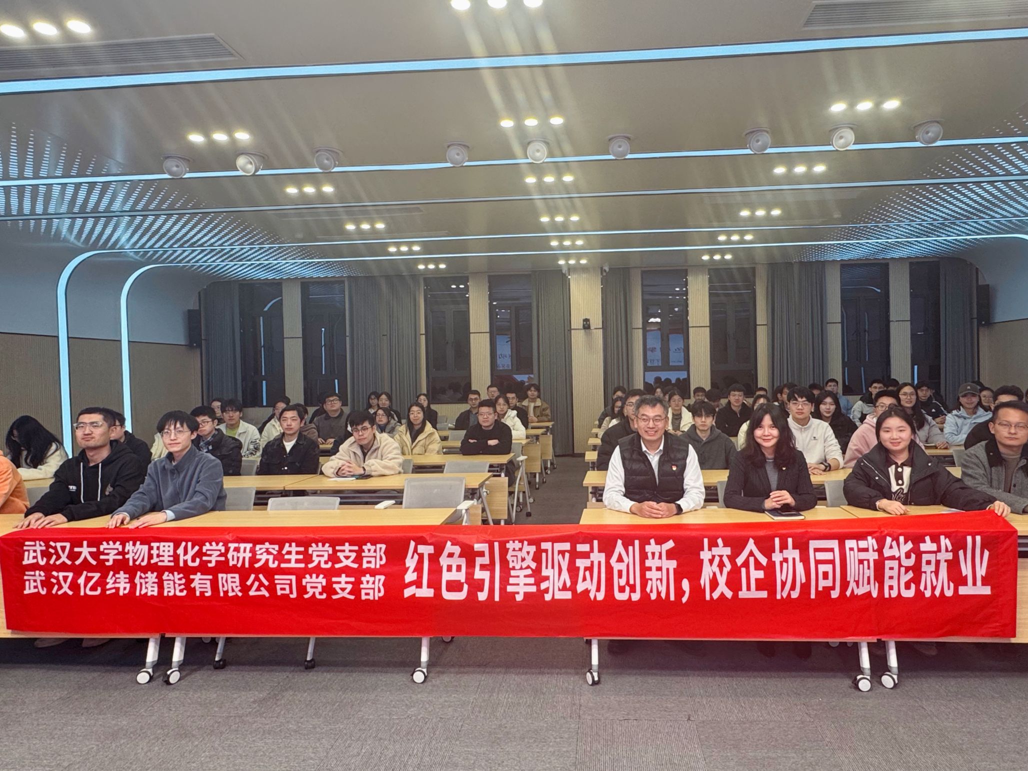 (通讯员:肖凯婷)11月27日下午,化学与分子科学学院物理化学研究生第一、第二、第三、第四党支部在C512教室举办“党建+就业”主题活动,学院党委副书记吕晶、支部全体党员及入党积极分子共同参与活动。2015届博士毕业生、亿纬锂能有限公司储能研究院/荆门研究院院长苑丁丁校友受邀担任主讲嘉宾。
