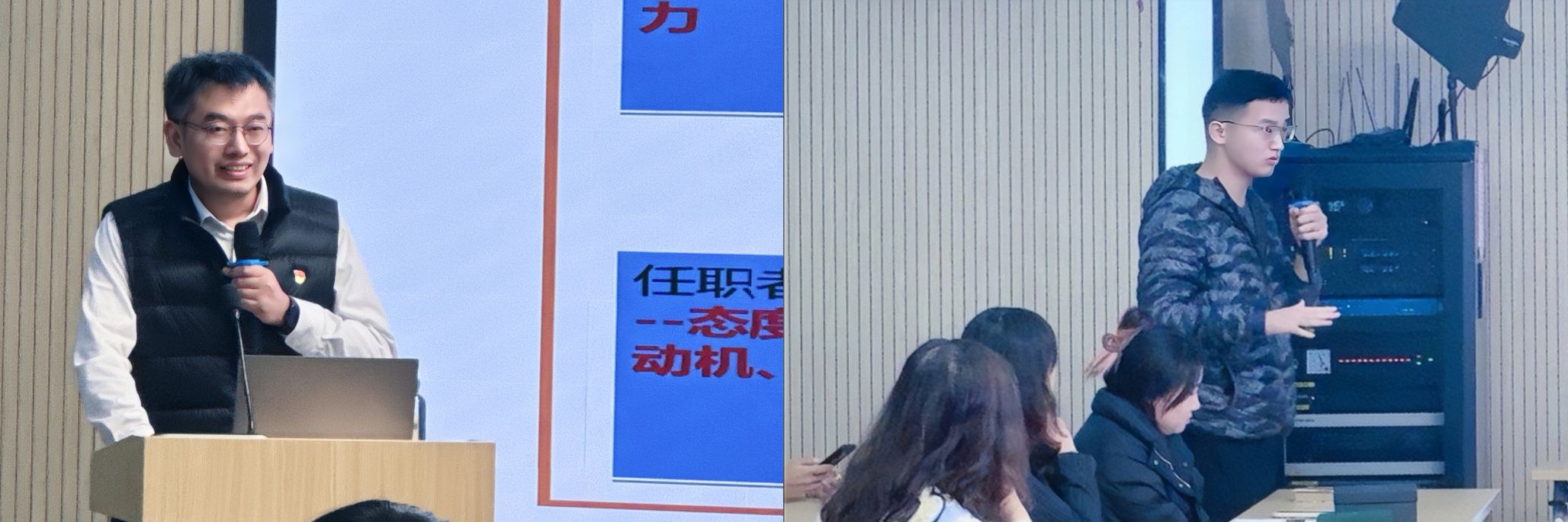 活动伊始,苑丁丁围绕亿纬锂能有限公司的岗位体系与任职资格建设展开介绍,从企业如何组织研发、研发链的结构与运作方式等方面切入,以锂电池研发生产为案例,系统讲解企业内部的工作模式与核心流程。生动的讲述让在场同学对企业职能架构、岗位职责以及行业发展前景有了更加清晰而具体的认识。