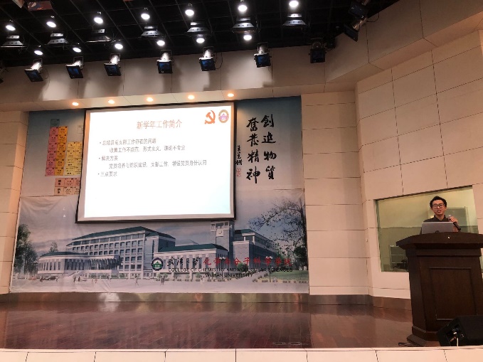 随后,第一党支部书记易正源同志向大家介绍了本科生党支部新学年的工作计划。他总结了过去一年里本科生党支部创新性开展的一些工作,比如1+3工程,学业帮扶等,同时也指出,目前在发展党员材料填写、党员理论学习等方面还需改进和优化。为了让支部活动更加“接地气”,他也提出了具体的工作设想,比如成立党小组进行培养考察,将档案工作规范化、制度化等。本科生党支部的建设需要全体党员、积极分子的参与,希望大家能够时刻严格要求自己,提升参与度,为支部工作建言献策。