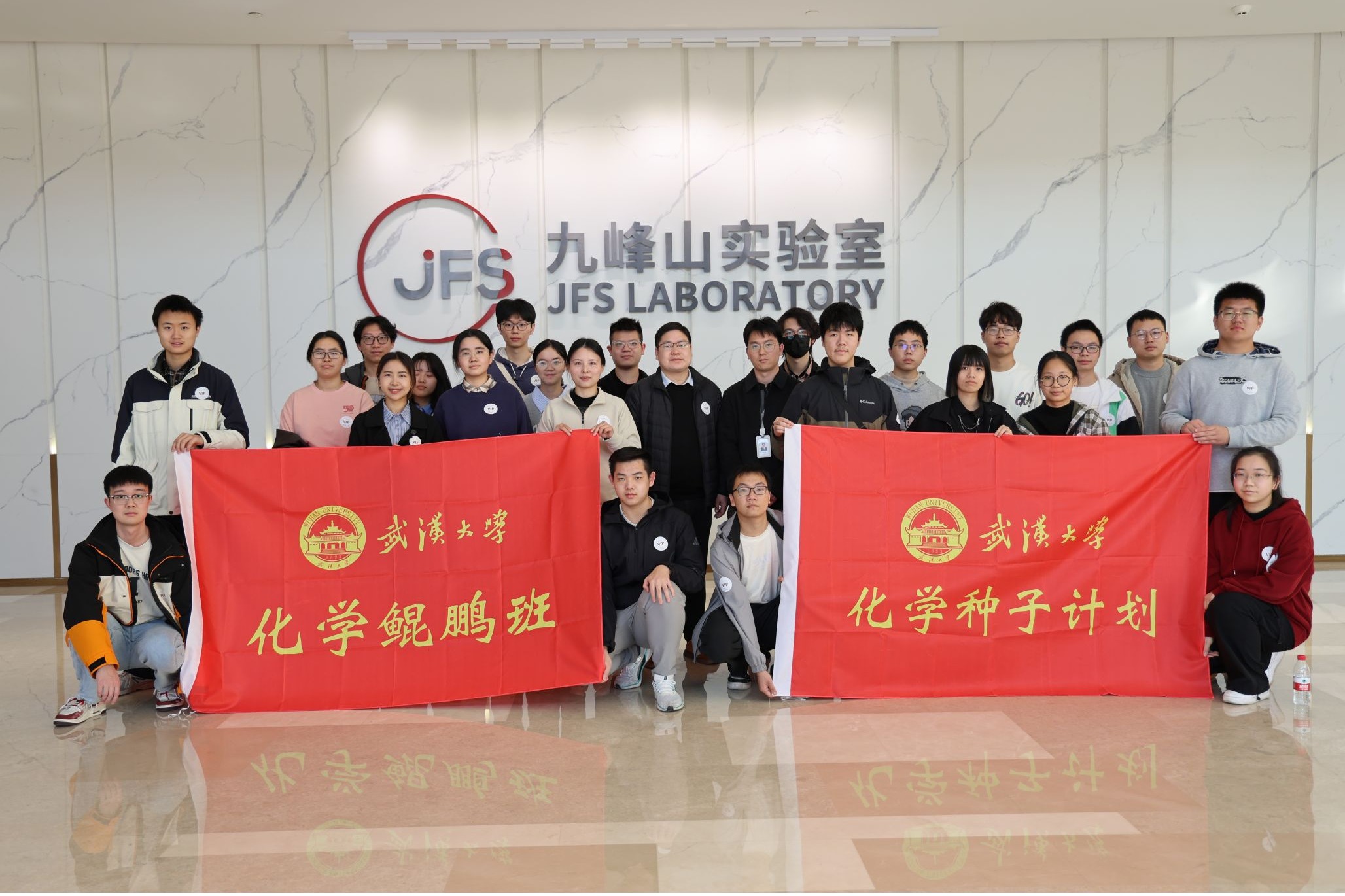 副院长蒋风雷与教学秘书李梦丹带领化学鲲鹏班及“种子计划”学生,前往位于武汉东湖高新区的九峰山实验室开展实践研学。此次活动旨在让致力于基础研究的学子亲身感受科技自立自强的时代脉搏,体悟科研报国的使命担当。