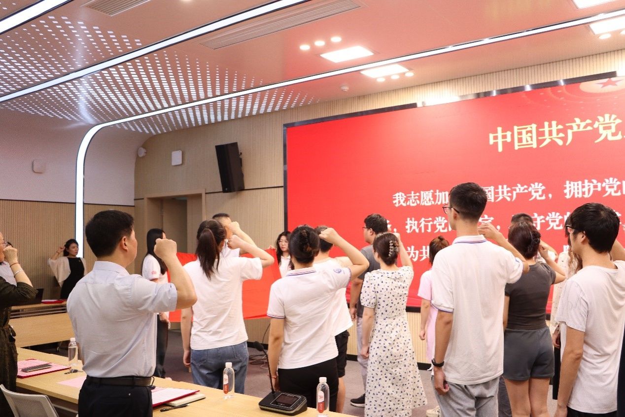 大会在庄严的国歌声中拉开帷幕。新发展党员上台进行入党宣誓,学院党委副书记王中全进行领誓,全体党员共同重温入党誓词。全体党员面向鲜红的中国共产党党旗,神情庄重,高举右拳,郑重宣誓,“我志愿加入中国共产党……”铿锵有力、掷地有声的宣誓声久久回荡,表达了党员们对党的赤诚忠心和为共产主义事业奋斗终身的坚定决心。