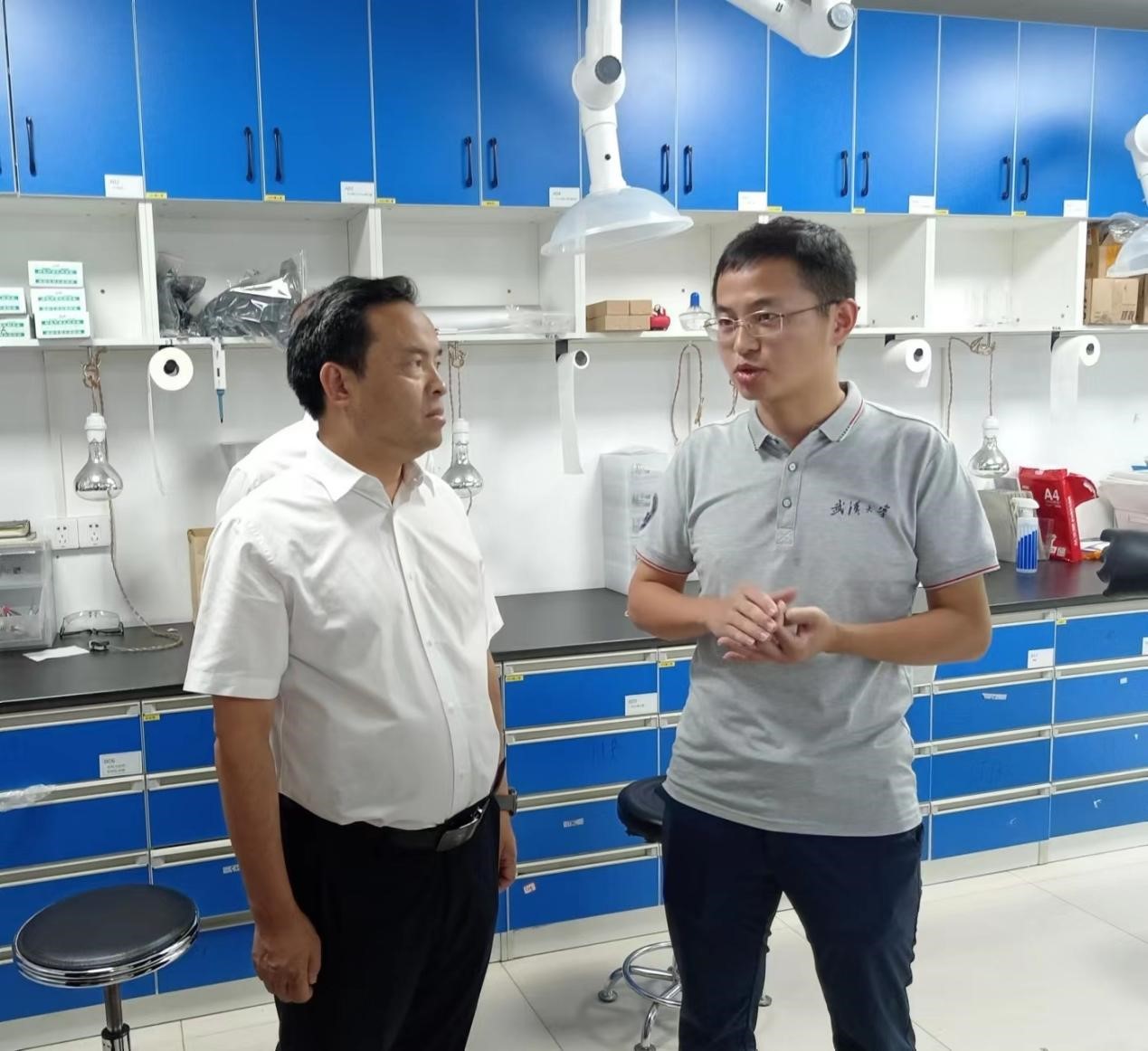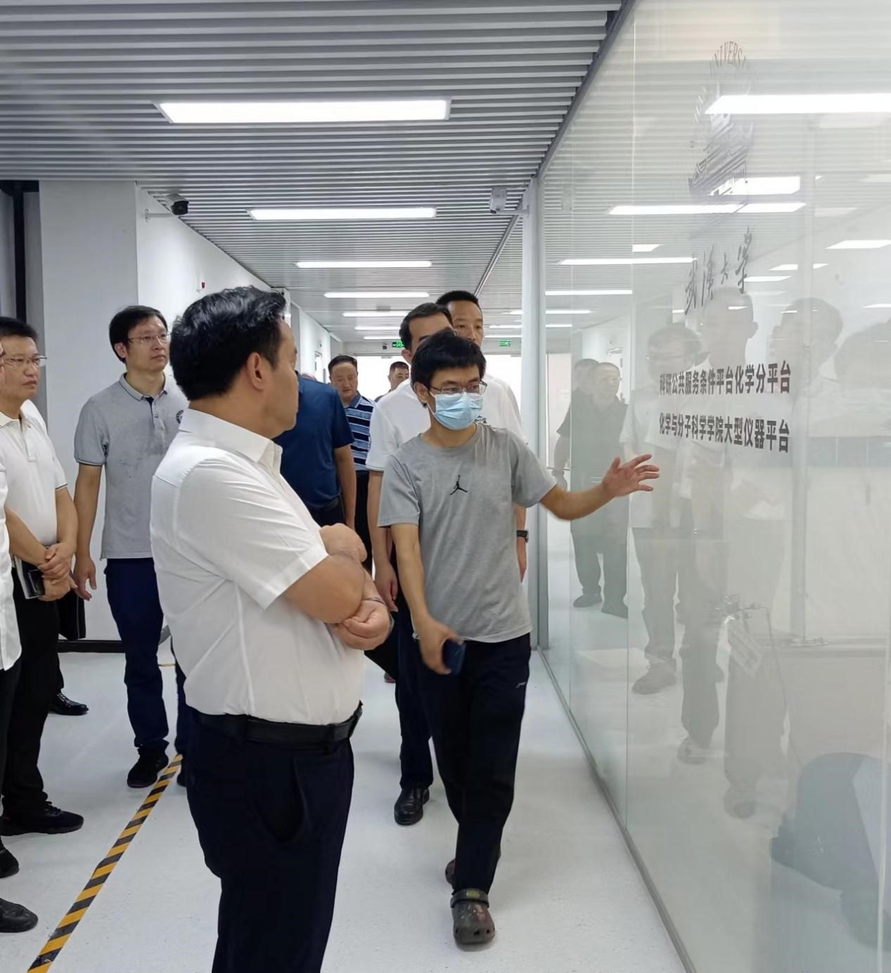 接着陈昌旭一行参观了大型仪器共享平台,刘文博教授介绍了仪器设备的运行情况。