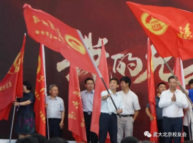 北京校友会第六届理事会换届大会,会长梁大明接过化学分会会旗。