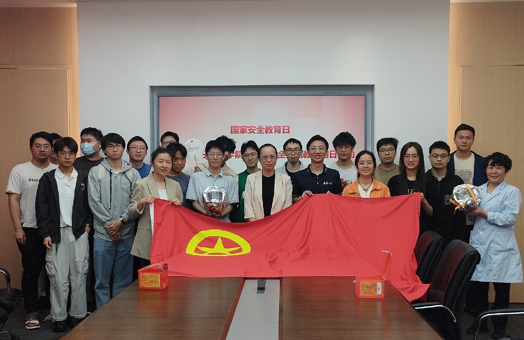 副院长甘泉、班级导师陈贝贝、团委书记武凌宇、安全与实验室管理办公室副主任陈雨平、物业徐文青经理等领导老师一起参加,团支部全体团员参与。通过现场参观、课程讲解及实操演练等环节,团员和青年生动具体的学习了国家政策法律、社会治理、长江水资源环保、实验室安全管理、个人生命健康等诸多领域知识,并产出了实验室安全海报等成果,反响十分良好,受到学院师生一致好评。